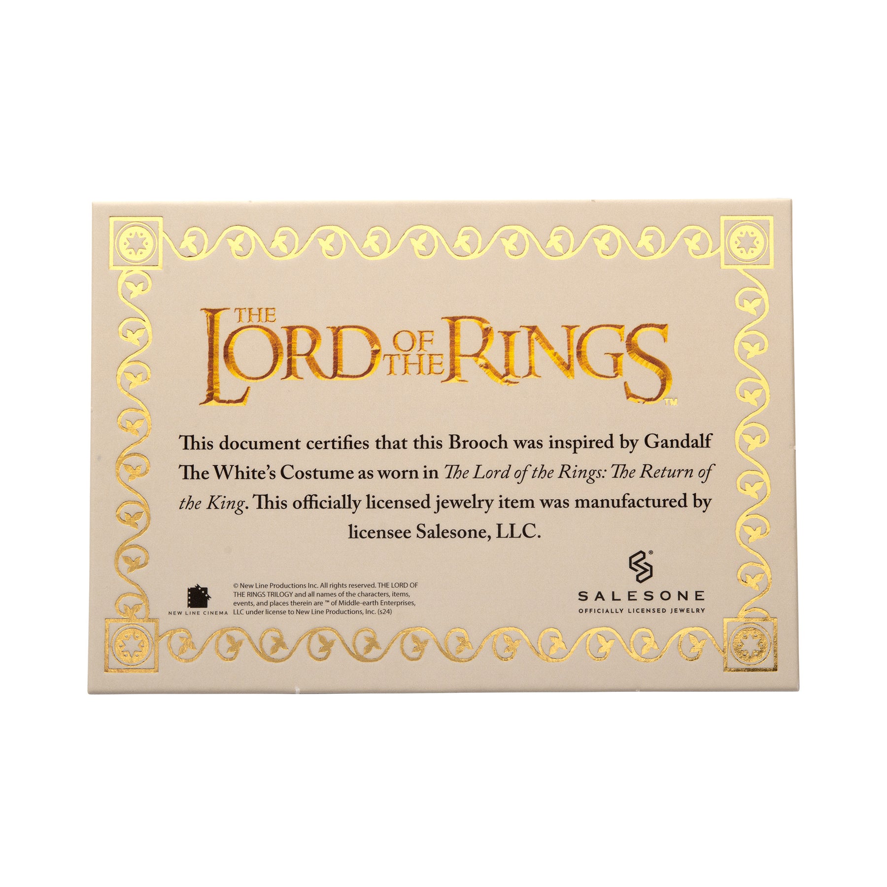 Channel the wisdom and power of Middle-earth with Gandalf the White's Brooch, inspired by his costume as worn in The Lord of the Rings: The Return of the King ™.